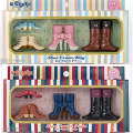 ブライスの足元を素敵に飾るお洒落なシューズセットが登場。ファッションのコーディネートをセンスアップするお洒落なシューズは、いくつあっても良いですね♪つま先のまるいストラップシューズ、4連ストラップのショートブーツ、飾りリボンつきのヒールの高いミディアムブーツ、ジョッキータイプのロングブーツの4種をセットにしました。どれもソールやボタンなどの金具はペイントされディテールにこだわっています。優しい色合いをセットした「Day」と、落ち着いた色合いをセットした「Night」の2色展開(計8足セットでの販売)です。