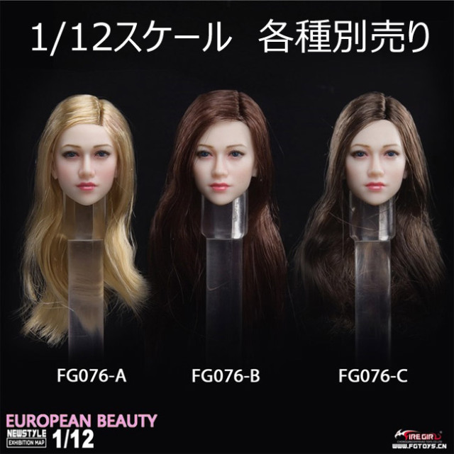 【FireGirlToys】FG076ABC European beauty Anna headscuplt 1/12スケール ドール・フィギュア用 植毛 女性ヘッド